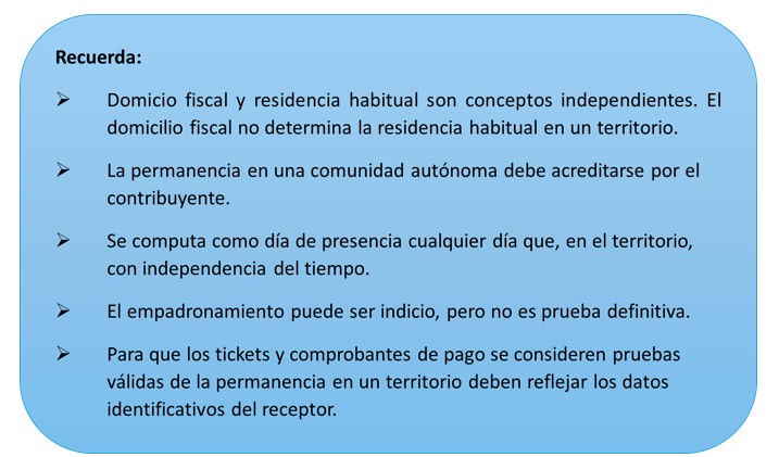 Determinar la comunidad autónoma de residencia es una cuestión relevante, porque de ello dependerá la atribución del rendimiento allí producido y, con carácter general, la normativa aplicable. Además, centrándonos en estos tres impuestos directos, la comunidad autónoma de residencia constituye un factor diferenciador a la hora de pagar impuestos, pues cada una regula su propia tarifa, deducciones, bonificaciones, reducciones, etc., lo que puede generar grandes diferencias.