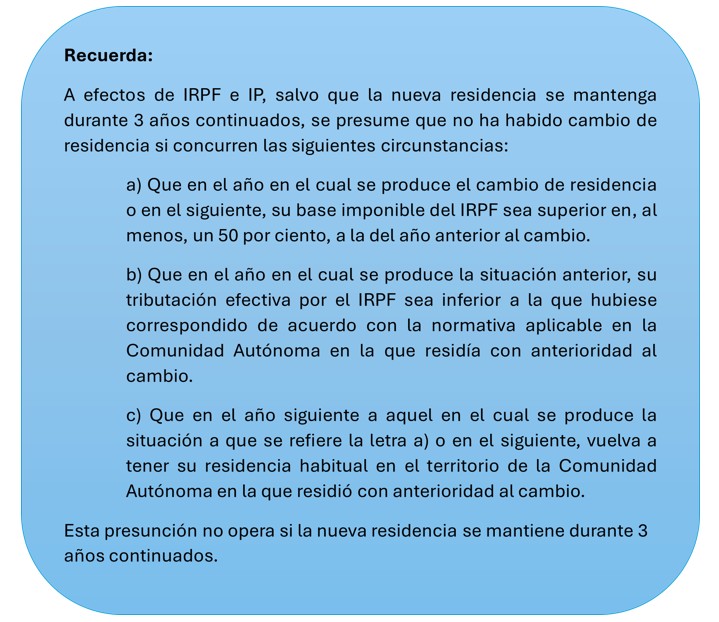 Hay que tener en cuenta que no producirán efecto los cambios de residencia que tengan por objeto principal lograr una menor tributación efectiva en los tributos total o parcialmente cedidos.